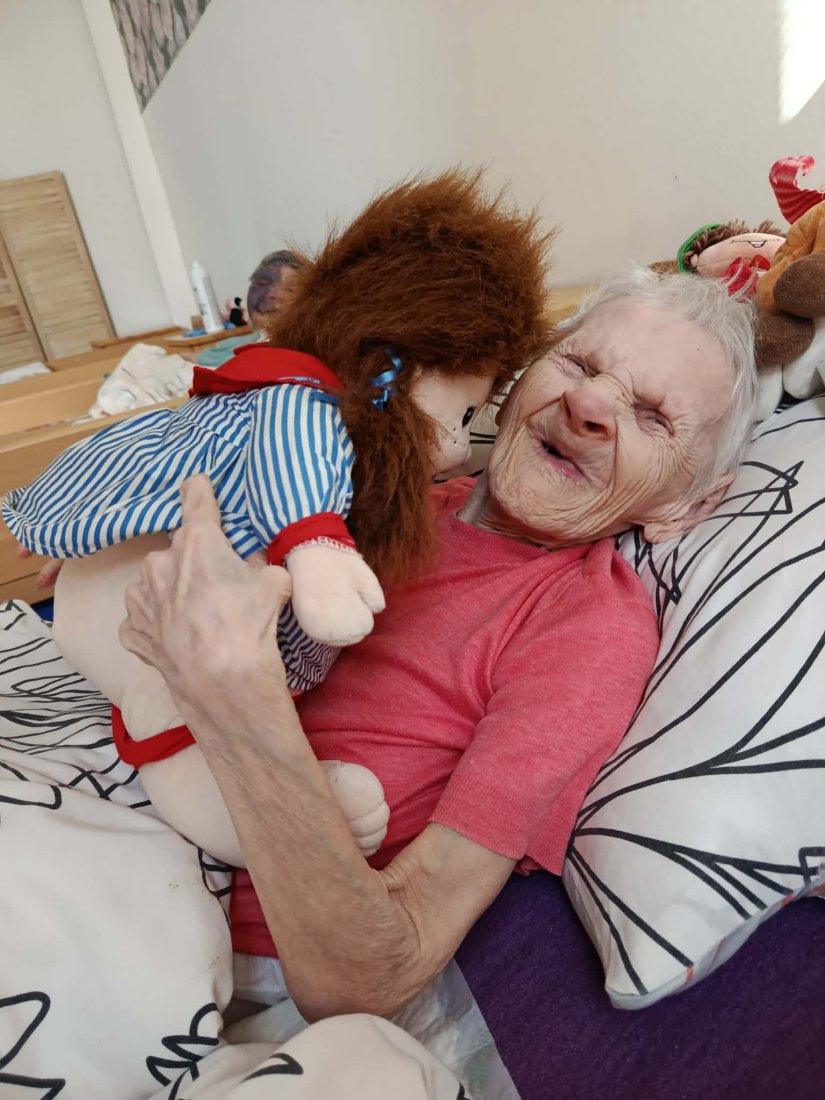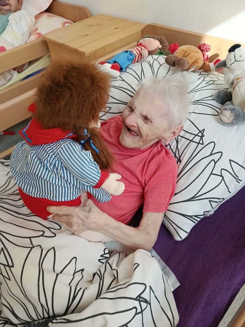 Prijímateľky na ležiacom oddelení majú svoje bábiky, ktoré im poskytujú pokoj, pocit bezpečia a emocionálne prepojenie s realitou. Pomáhajú im tiež tlmiť úzkosť, nespavosť a zmätok a navodzujú upokojujúcu atmosféru plnú spomienok a tepla. Pre mnohých prijímateľov sú tieto bábiky akýmsi majákom istoty.
