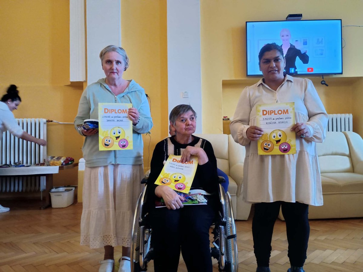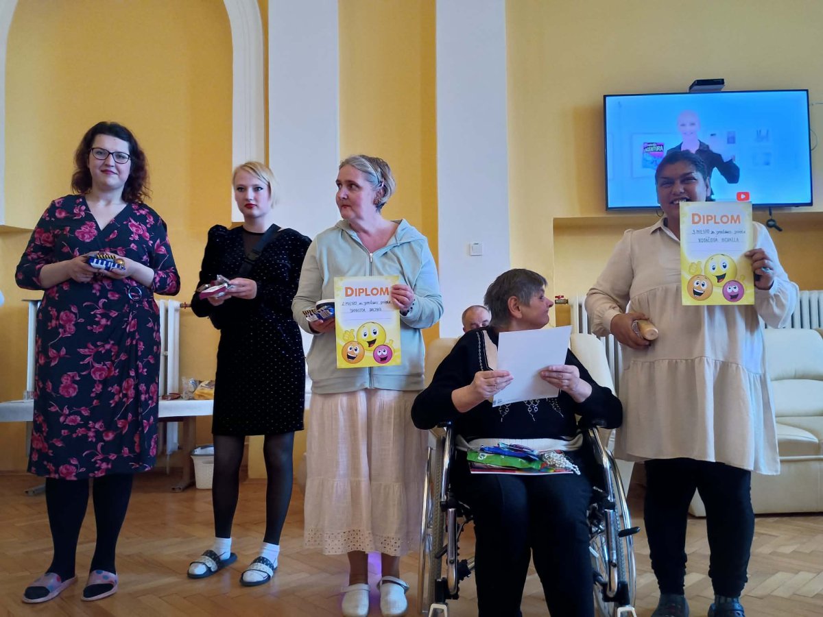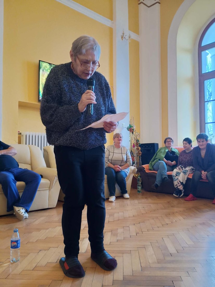31. marca 2026 sme v našom zariadení prežili nezabudnuteľné popoludnie pri recitácii. Naše prijímateľky si dali na výbere textov naozaj záležať a každý jeden prednes bol niečím výnimočný. Bolo dojímavé sledovať tú odvahu a radosť v očiach všetkých zúčastnených. Ďakujeme našim recitátorom za krásny kultúrny zážitok a porote za ich neľahkú úlohu pri výbere tých najlepších. Porota posudzovala nielen pamäť, ale najmä umelecký dojem a srdce vložené do slov. Každý účastník bol odmenený za svoju snahu a víťazi si odniesli pamätné diplomy.