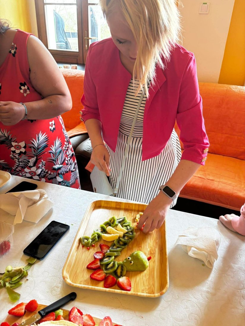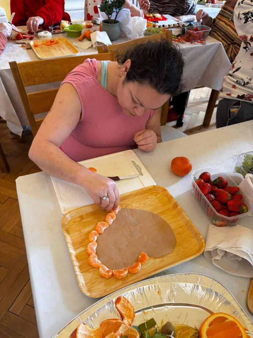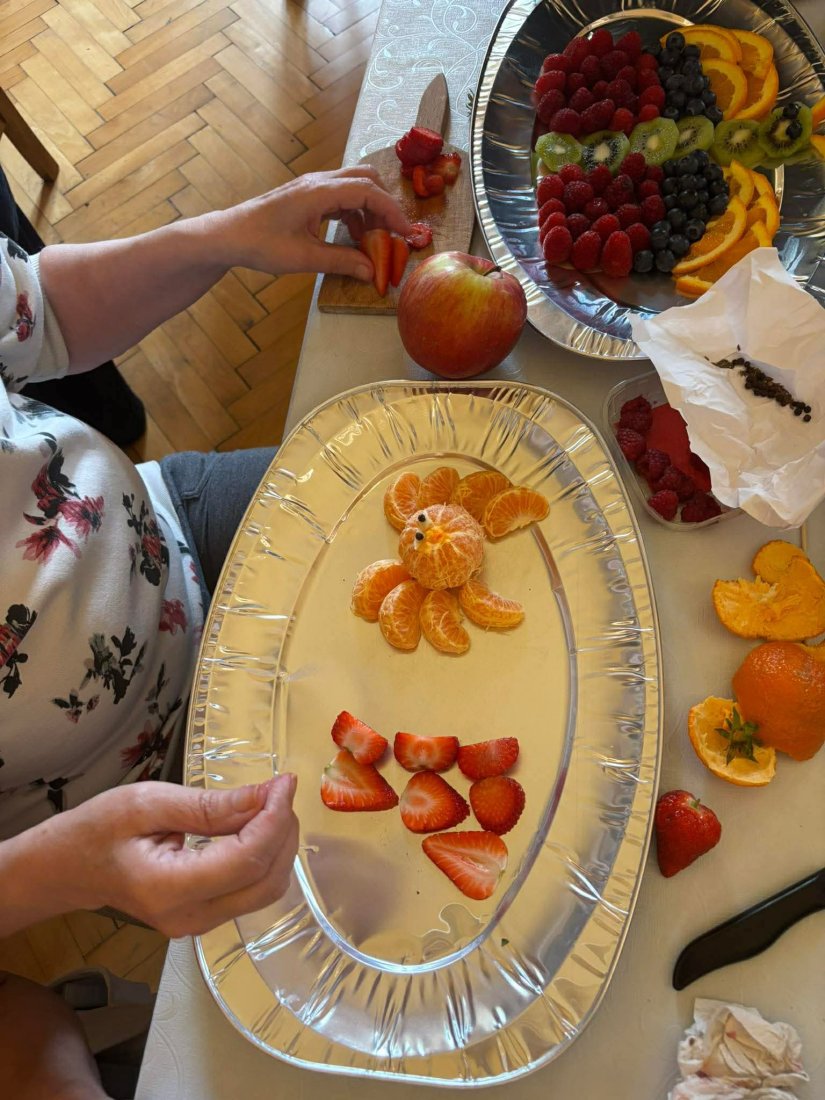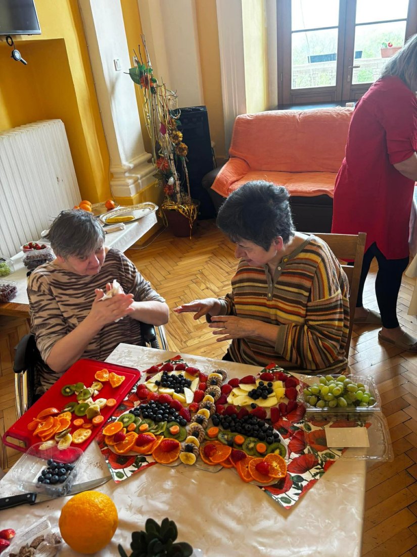 Dňa 16. apríla 2026 sa pri príležitosti Svetového dňa zdravia uskutočnila v našom zariadení terapeutická aktivita zameraná na podporu zdravého životného štýlu. Prijímateľky sociálnej služby spolu s inštruktormi sociálnej rehabilitácie a terapeutmi pripravili ovocné misy, ktoré rozdali potom ostatným prijímateľkám v zariadení, aby si tiež pochutnali na fajnom a zdravom ovocí. Cieľom podujatia bolo posilnenie nutričného povedomia a rozvoj jemnej motoriky v rámci pracovnej terapie.